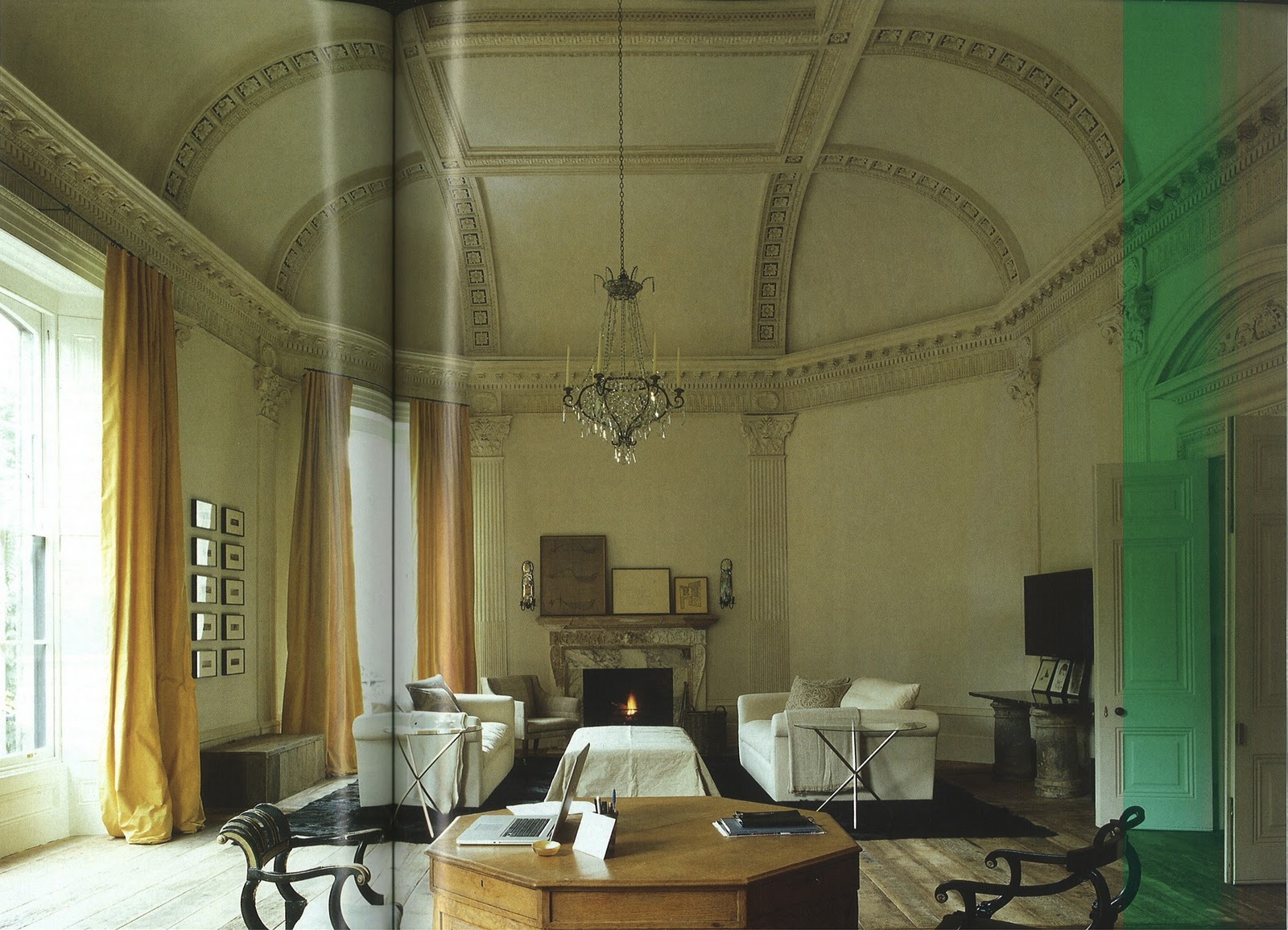 First off, let me say, clearly my scanner is having some difficulty. I apologize for the green lines on the photos – but I scanned these from the November 2011 issue of World of Interiors magazine, and it seems the two do not get along. That being said, below is what I believe to be an absolutely stunning home built in 1859 in London. Originally the home of a painter, the structure had bastardized over the years when used by a charitable organization for public space. Now after a painstaking restoration, by its owner and decorator Rose Uniacke, it is in full bloom again.