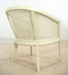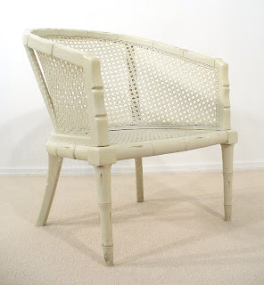 Voila! Here is the chair that I decided to buy. I love the cane, which is in really good condition, the hollywood regency style bamboo, and the ability to have my own cushion made. Obviously this thing is getting lacquered within an inch of its life. I would love to hear some suggestions from my readers: colors to lacquer? Fabrics for the cushion? I love this chair because the possibilities are absolutely endless. I am so excited because I have wanted a chair like this for such a long time!