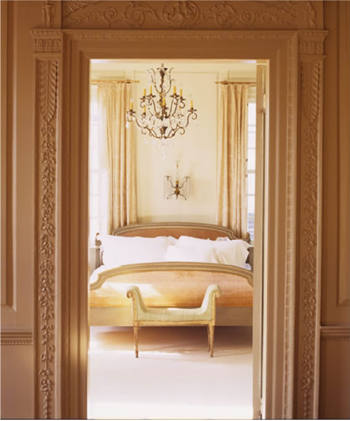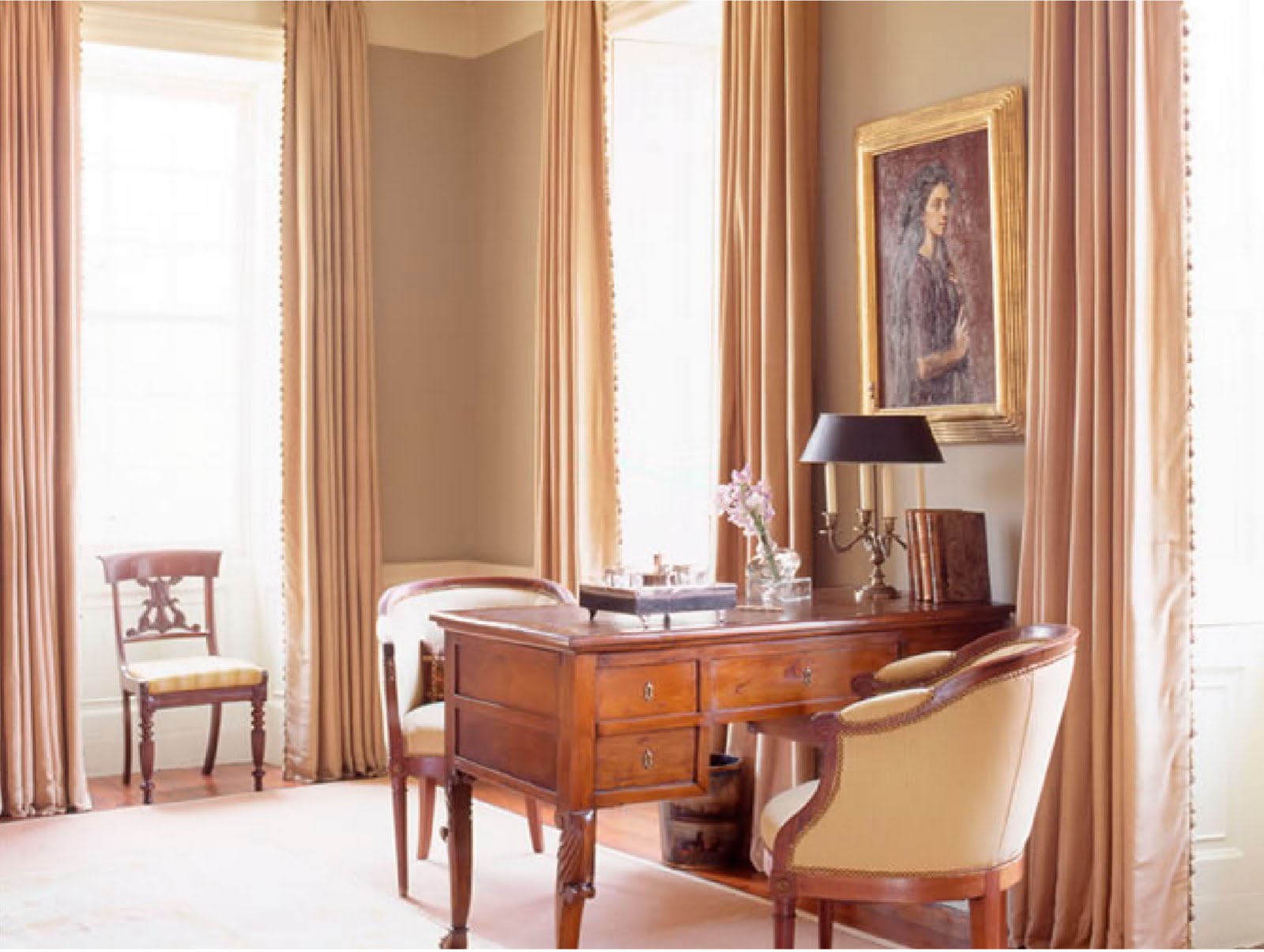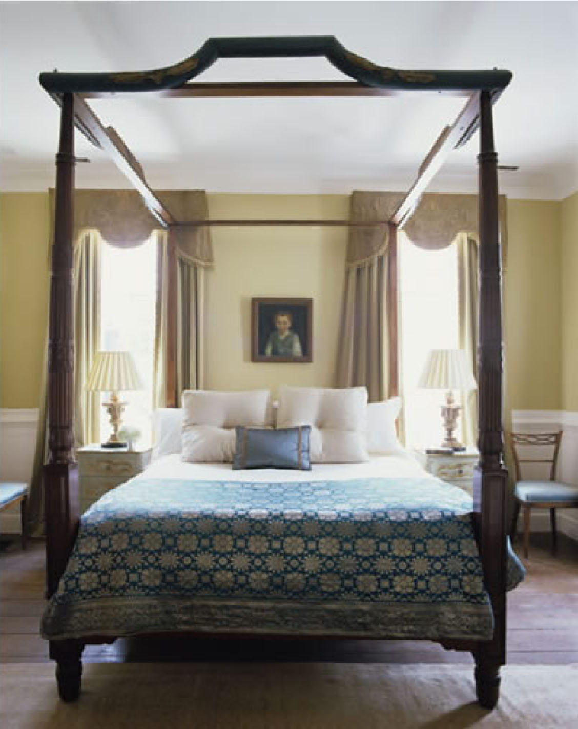 Although very traditional, the warm, neutral tones of this bedroom are more modern than 19th century.