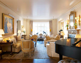 In both of these Albert Hadley designed rooms, he uses lamps as his primary source of light. I would highly recommend this as a first course of action, with low wattage bulbs of course. However, if you need to use your overhead lights, for everyone’s sake, get a dimmer switch.