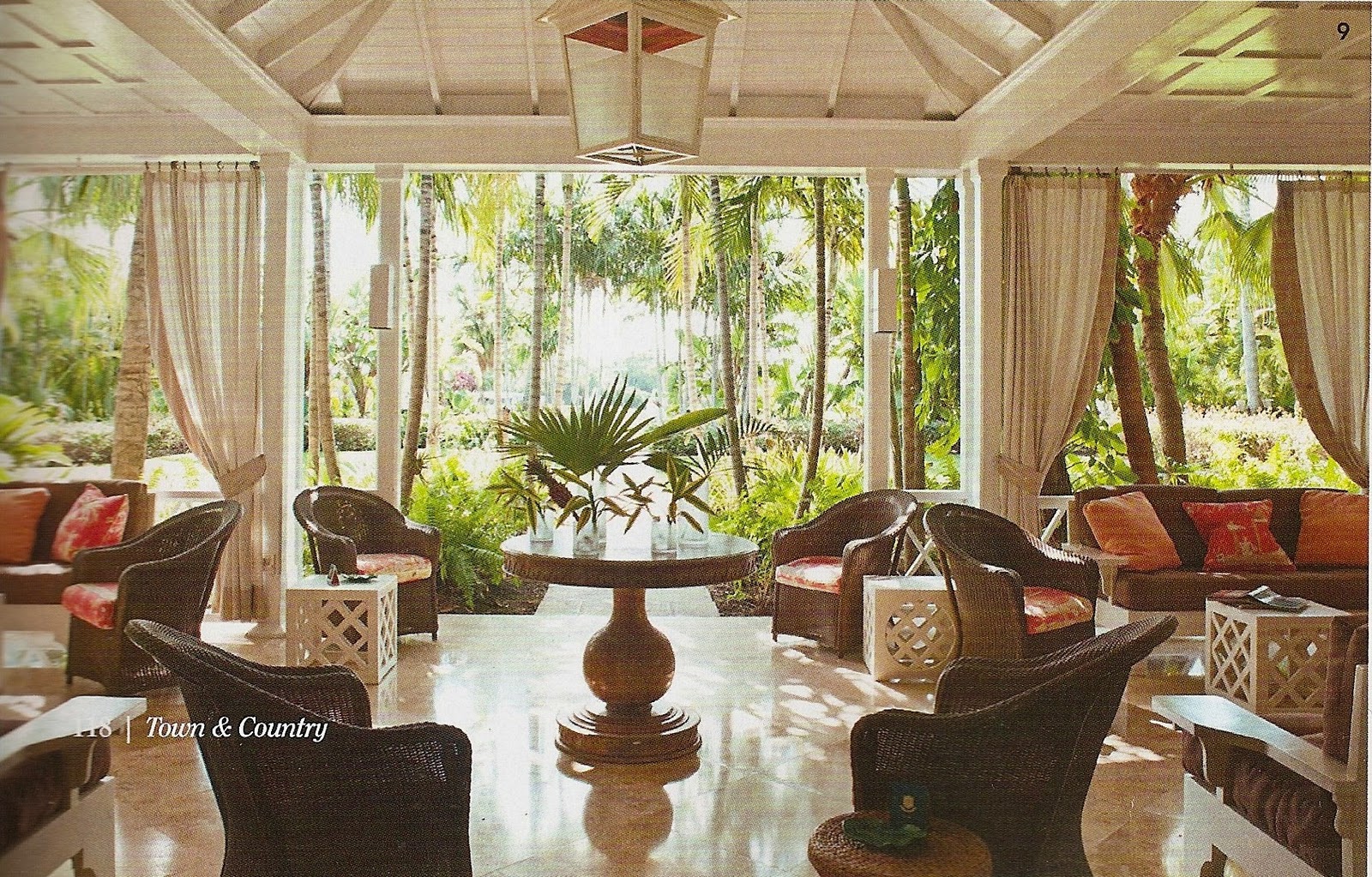 Aren’t these amazing? Bamboo, pineapples, Quadrille, rattan, palm trees, and navy blue–doesn’t get much better than this! I hope it entices you to go pick up the latest issue of Town & Country. Makes me wanna take a little vacation … too bad the club is members only! And thanks again to my Mom … what do you all think?