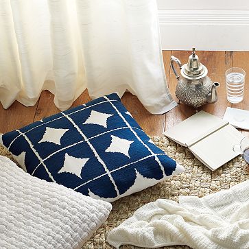 Good morning everyone! Thesis handed in. Katherine and William married. A great day. After my post at House of Turquoise earlier this week, a number of readers expressed interest in the assortment of blue pillows in my apartment–thanks to everyone for all their kind words. So in honor of all the “pillow talk” I thought I would share some of my favorites that are “on the market” right now. The links are embedded in the store names, enjoy!