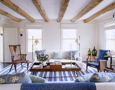 After I featured this photo from House Beautiful in last week’s post on porches, I decided to share more of this East Hampton cottage with you after a beautiful weekend out east. Although some people may think of “the Hamptons” as a place to see and be seen, and a place for mansions and sports cars, historically that was not always the case. This house, as well as many of the houses in East Hampton, Sag Harbor, and Shelter Island tell a different story – one of sea captains, fishermen and early settlers. As you all know, I am keen on all things historic, and this house, decorated by my favorite Tom Scheerer, is no exception.