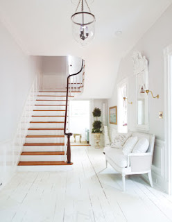 One of the trademarks of Trove Decor is that they often bring new life to old furniture by painting it and re-upholstering it. Newell’s passion for white paint is certainly apparent in her clean, crisp, refreshingly modern and yet obviously historical foyer.