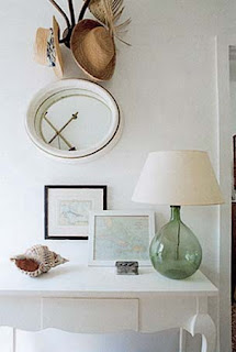 I love the louvered door at the end of this hallway. For a beach house, I would do exactly as Scheerer seemed to do here, white walls, dove gray floors, accented with a seagrass runner and different basket weave accessories.