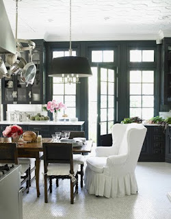 Ever since Windsor Smith’s LA home was featured in House Beautiful, I have been really obsessed with the kitchen. Most importantly, I have been obsessed with the idea of a skirted wing chair at the head of a dining table. I have always loved a good wing chair, but the idea of skirting it, and taking it out of the living room and bringing it into the dining room or kitchen has really got me excited.