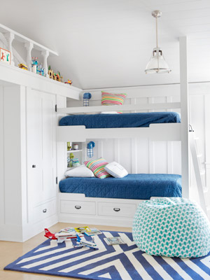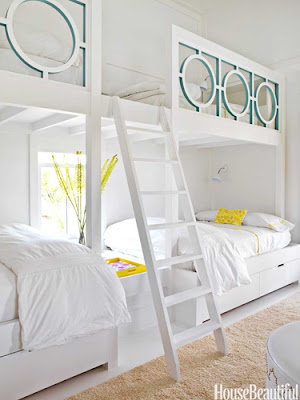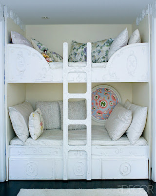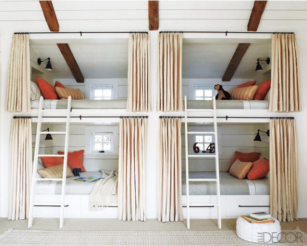 And as a result of my feeling youthful during this season, I seem to have developed a fondness for bunk beds or bunk rooms. Not just bunk beds that you put in a room, but bunk beds that are built in as part of the architecture of the space. How cozy. I look at these pictures and wonder how I possibly missed out on what is a seemingly a very American experience.